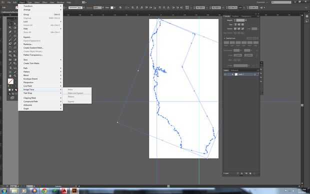 Para cortar California en el chorro de agua, encontró la imagen de la frontera del estado en google y utilizar la marca y ampliar feature(Illustrator) para crear líneas de vector. Usted puede hacer esto en Illustrator por ir a: