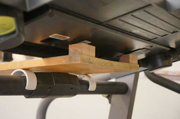 Quería que la conveniencia de poner el escritorio desde la parte superior de la cinta, así que me los bloques de madera también se cabe entre el apoyo transversal y la consola de la cinta.