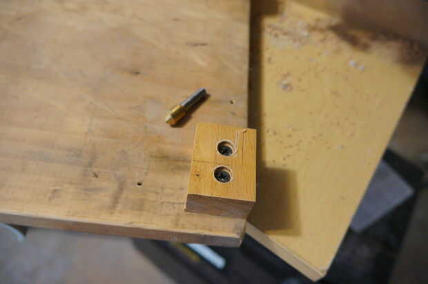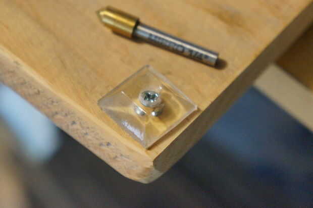 Los bloques de madera se une también a la parte superior en el escritorio en el extremo opuesto de los topes de goma. Perforación y contador se hunde a que estas también ayudarán evitar grietas y evitar rascarse hasta la parte inferior de la consola de la cinta de correr, si te preocupas por esas cosas.