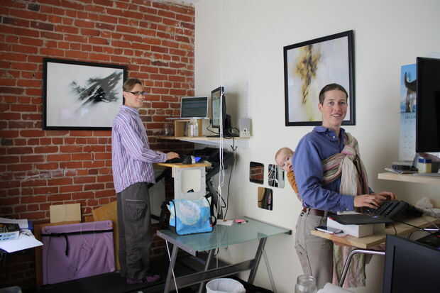 oí recientemente un informe sobre "la mesa espléndida" acerca de Dr. Levine en la Mayo Clinic y sus mesas de rueda de ardilla:http://splendidtable.publicradio.org/listings/090613/Inmediatamente al día siguiente hice soportes para mi dos escritor