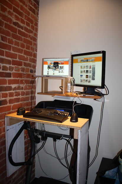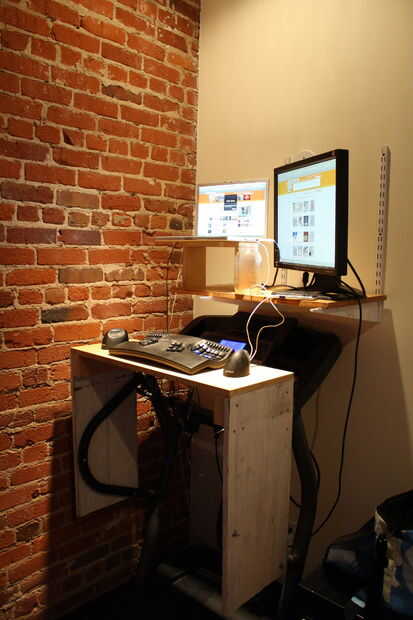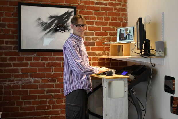 oí recientemente un informe sobre "la mesa espléndida" acerca de Dr. Levine en la Mayo Clinic y sus mesas de rueda de ardilla:http://splendidtable.publicradio.org/listings/090613/Inmediatamente al día siguiente hice soportes para mi dos escritor
