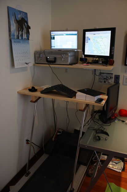 I comenzó a experimentar con un escritorio de pie o caminadora el verano pasado y finalmente han llegado a hacer la conversión completa. Aquí está cómo lo hice, si puede usted puede hacerlo también.Paso 1: Adquisición de caminadora y escritorio encon
