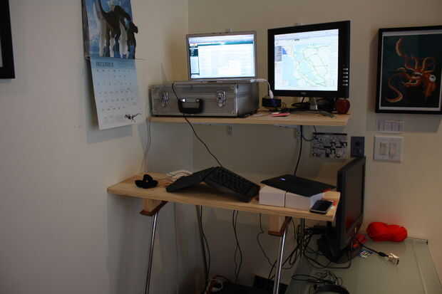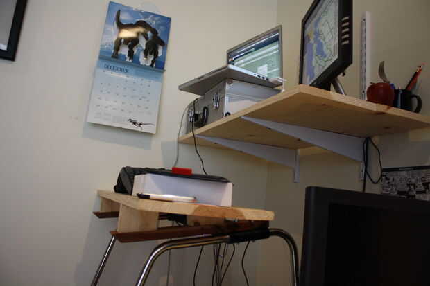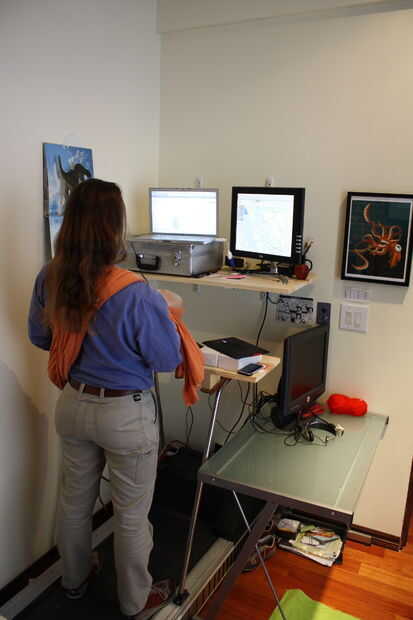 oí recientemente un informe sobre "la mesa espléndida" acerca de Dr. Levine en la Mayo Clinic y sus mesas de rueda de ardilla:http://splendidtable.publicradio.org/listings/090613/Inmediatamente al día siguiente hice soportes para mi dos escritor