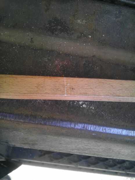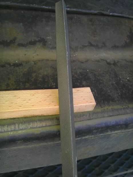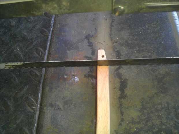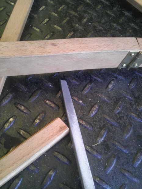 Corte el quid poco angular en el extremo de la pierna quitado. Archivo de los extremos callejeros de corte. Llené bajando por la pierna para poder encajar en la ranura del brazo plegable que se encuentra el marco de la lona en. Luego cortar la pierna por la mitad y presentado las descarriadas en el corte.