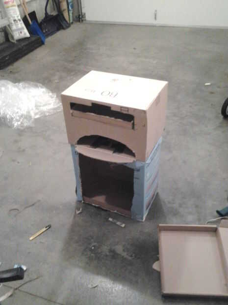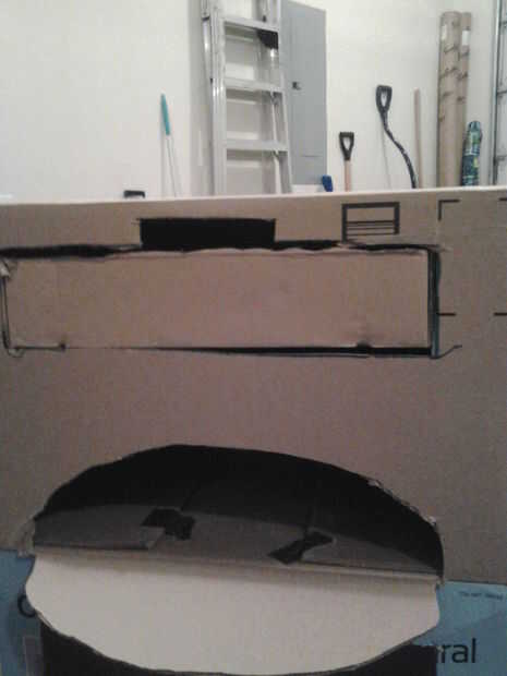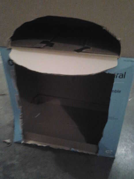 este es mi escritorio cartón hice de 2 cajas Lo superior que parece una ranura es un cajón. El compartimiento inferior está, bien, un compartimiento La parte inferior cortar es un lugar para sus pies. Pegan 2 cajas. Este es mi primer instructable.