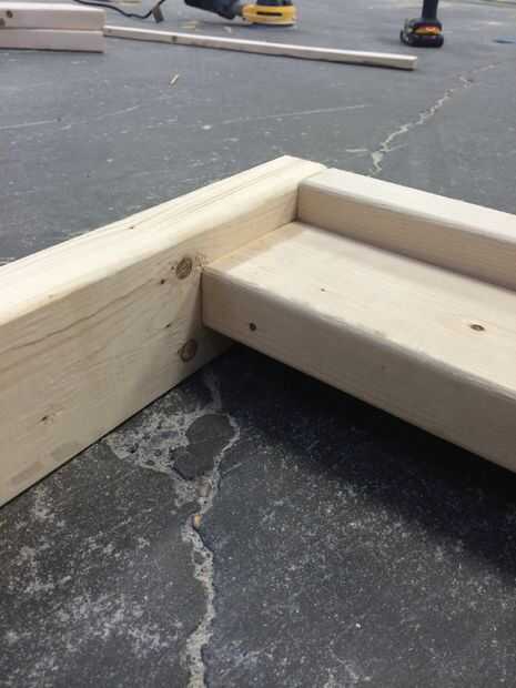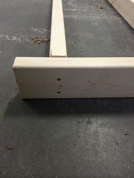 Por último he añadido la viga transversal restante en la dirección opuesta de la viga transversal primera para mantener el marco cuadrado, atornillada en ambos las piernas y de la viga transversal superior.