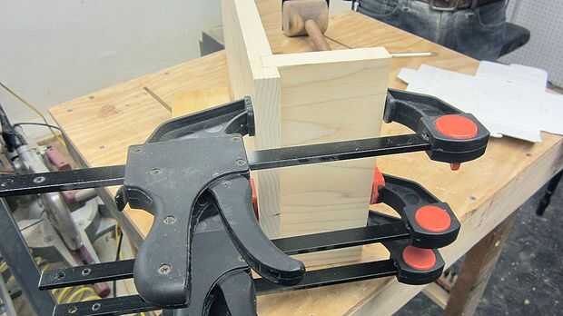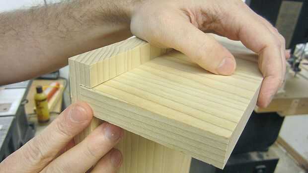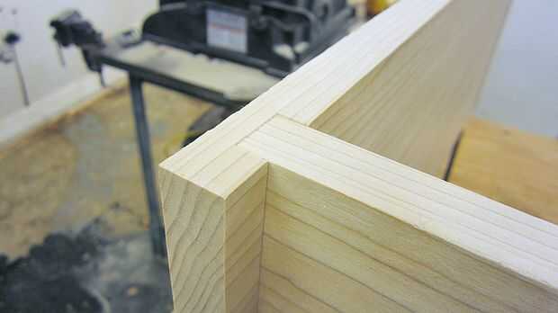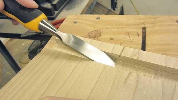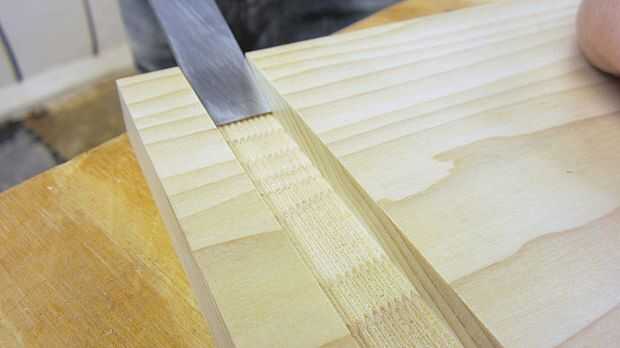 No tenemos un disco de moldurar para hacer los cortes, y como resultado, hay unos surcos muy pequeños que han dado lugar a posteriores cortes. Después de hacer los ajustes de prueba para asegurarse de que los lados del estante podrían encajar en el conjunto dado, utilizamos un cincel para limpiar las ranuras.