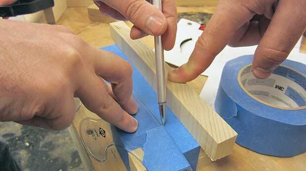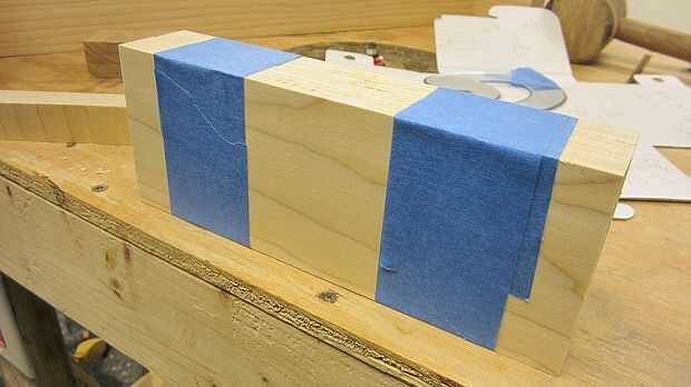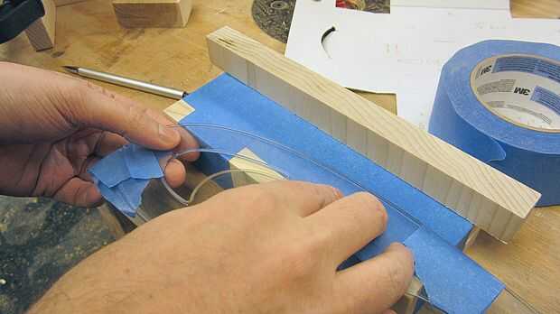 • Para los apoyos de ala, cortamos dos piezas que eran iguales en tamaño. Puesto que se supone para ser coincidencia, nos aseguramos con cinta adhesiva antes de cortarlos. Éstos eran el mismo ancho que el ala.