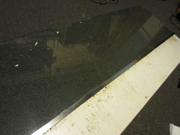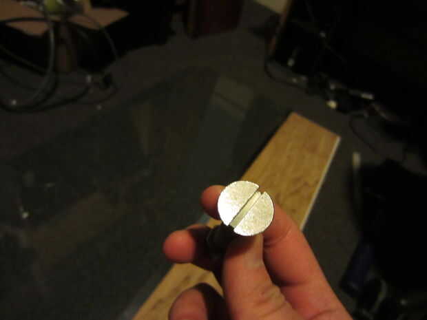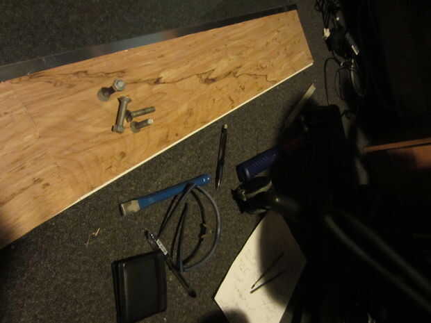Mis tiras (uno no era suficiente así que corte por la mitad) de la madera contrachapada no perfecto y en algún momento me gustaría reemplazarlos. Proteger la madera con pernos parecía una solución viable, y mientras lana de acero en decidió brillar algunos pernos para los soportes de metal en el mostrador de alimentos.