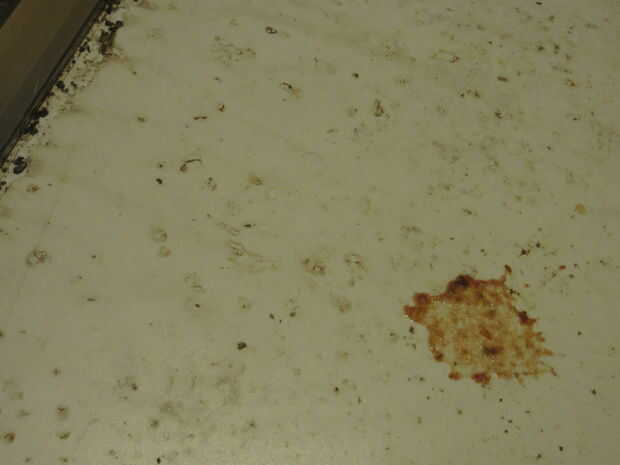 Fui a la ciudad con agua, jabón y lana de acero (jabón y agua menos lana de acero para el vidrio). Esto me dio un desinfectado, si no bonita, superficie de la tabla. Entonces decidí cubrir la parte de madera con madera contrachapada chapeada y seguir adelante.