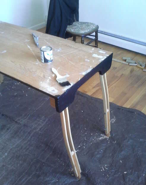 Escritorio de formica de altura ajustable con doblar las piernas (hechas de muletas). (13 / 15 paso)