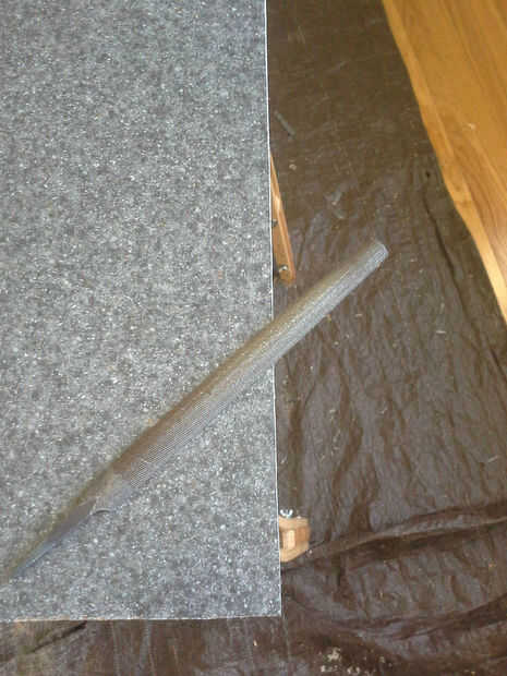 Después de que el pegamento esté seco; Lime los filos con una lima de metal y redondear las esquinas. Cuando haga esto puede que necesite retocar algunos puntos con la pintura en el borde.