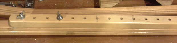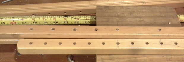 La pieza de la muleta que previamente sirvió como el ajuste de altura continuará a servir a ese propósito. Ya que hemos invertido la madera exterior, nuevos orificios de ajuste deberá ser perforado.