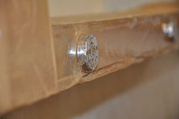 hice este escritorio de la computadora de un aparador antiguo en un mercado de pulgas.  No tomar una foto de la cómoda antes que barnizadas, pero lijar, tinción y unas capas de barniz fueron los primeros pasos.He quitado el cajón del centro y había m