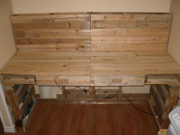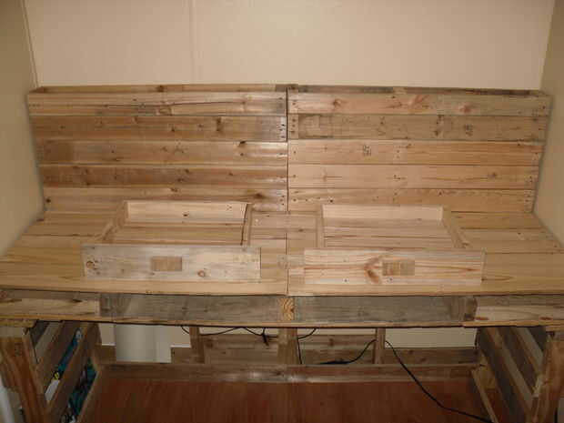 Creo que resultó bastante bien. Todavía se ve como sólo un montón de paletas atornilladas pero muy robusto y funcional. Además parece "rústico" bastante que mi novia me deja de seguir en la casa! jaja