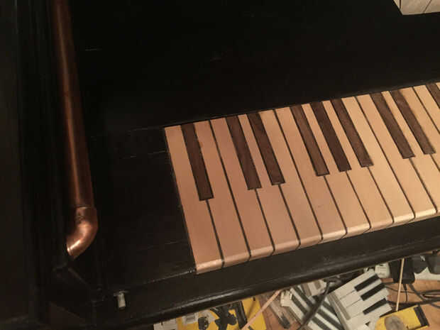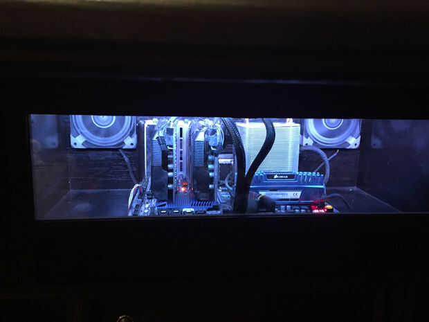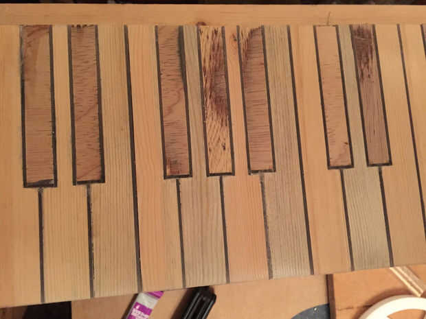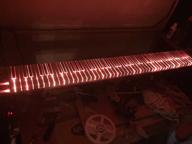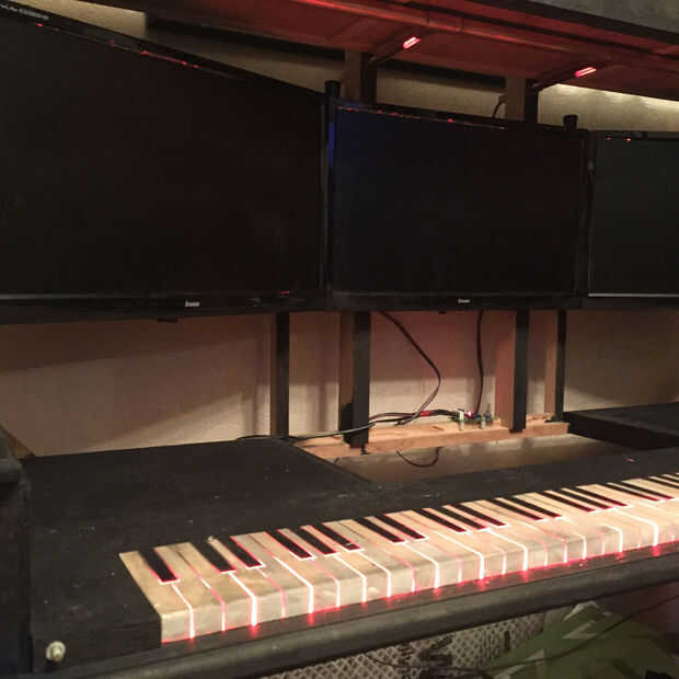 Quería ser capaz de ver la placa base, por lo tanto, el escritorio debe ser cubierto de vidrio. También quería mantener el piano, así que aunque unos integrar algunas teclas del piano en el frente. Pronto esto evolucionó hacia mí queriendo integrar luces en las teclas (bien entre ellos).