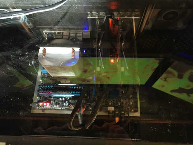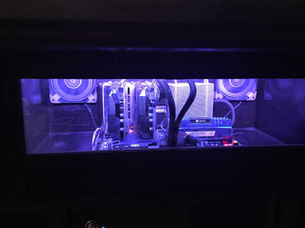 Fot la iluminación dentro del área de la placa base utiliza el mismo tira de LED como el teclado y conectado en el mismo controlador que cambia con el resto de la iluminación. Simplemente se fija en la barra de alimunium de 10mm "U", lo bueno de esto es exactamente el diámetro interior derecha para la tira de LED para que ningún trabajo además necesaria. Los resultados son impresionantes.