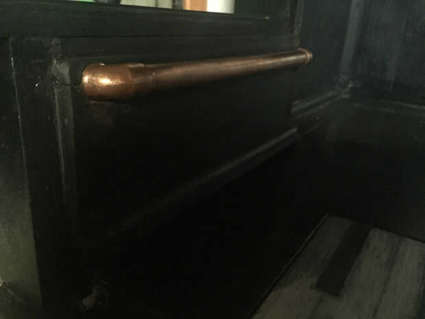 Había manchado de la madera negra y utiliza una combinación de roble oscuro brillante barniz y barniz brillo claro para dar más años de edad victoriana, de conformidad con la influencia del steampunk. El tubo de cobre es pollished y barnizado y añade un toque agradable.