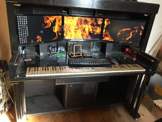 El escritorio sí mismo todavía está evolucionando, hay varios bits que probablemente haría diferente y sin duda mis métodos de construcción hicieron los carpinteros ahí cringe. Necesito fijar puertas en la parte inferior para ocultar el área de informática especialmente como el que puse una ventana en la parte delantera demasiado. De todos modos espero que esto te ha inspirado a intentar algo un poco diferente al pensar en un escritorio. El sistema de sonido también debe ser reemplazado con algo más de mantenimiento y steampunkish.
