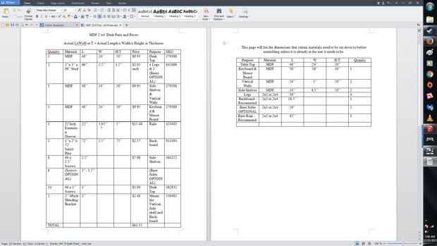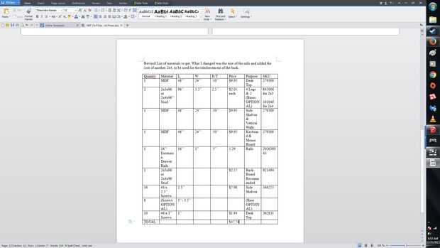 Los materiales necesarios son en las fotos 4 y 5 en forma de tabla de tabla. La segunda lista larga es revisada para cambiar el tamaño de los carriles de 22'' a 16'' y agregando el costo de otro 2 x 3/2 x 4 para la base y el tablero trasero recomendado. Resultó ser cerca de $10 menos que la primera lista. La lista es lo que necesitan ser cortados para los materiales.