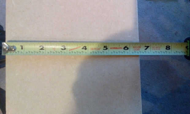 Si utiliza las medidas que te di en esa tabla de tabla de dimensiones, entonces debe tener los mismos tamaños que se muestra arriba. La primera imagen muestra cuatro piezas de MDF grueso de.50 pulgadas. Los dos en la izquierda son 6.5x24 pulgadas, estos son los estantes laterales (horizontales) y los dos a la derecha son de 24 x 5 pulgadas, los que son para las paredes de la estantería (verticales).