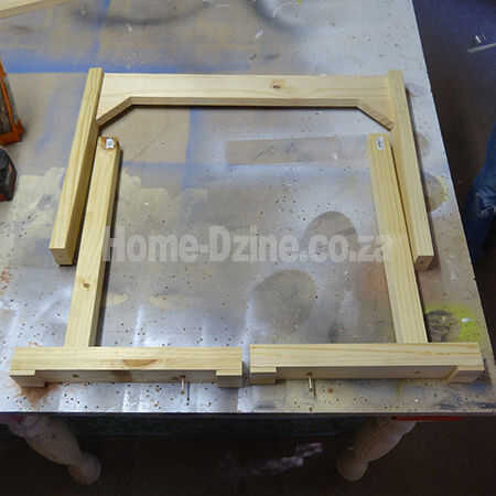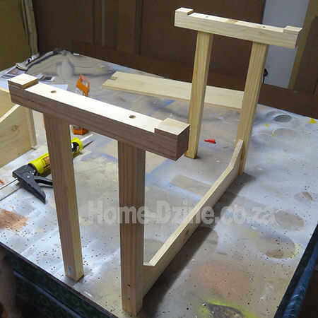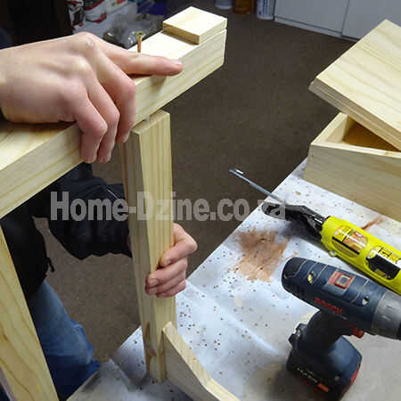 8. Añadir una gota de pegamento para madera a la parte inferior de las dos patas restantes antes de colocar a los pies. Las patas delanteras y traseras son 80mm en el borde.