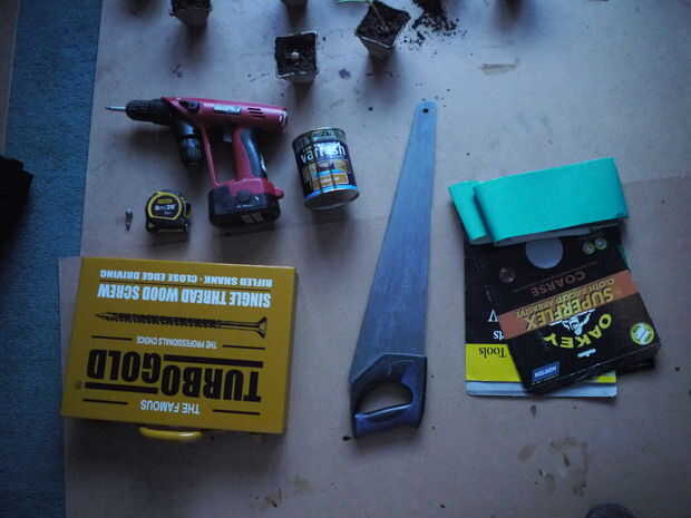 vii) papel de lija - útil que algunos gruesos (grado 60), así como algunos grados más finos para el acabado. Lijadora de energía era útil pero bloque que enarena resultó igualmente efectiva.