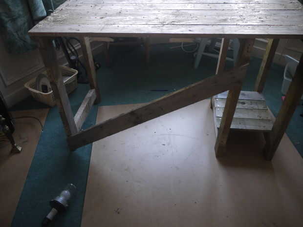 Para hacer el robusto escritorio añadí un soporte diagonal en la espalda, algunos soportes bajo el escritorio propiamente dicho y una pieza y un listón horizontal en la parte delantera para la estabilidad y estética - todo mejor que se muestra en las fotos.
