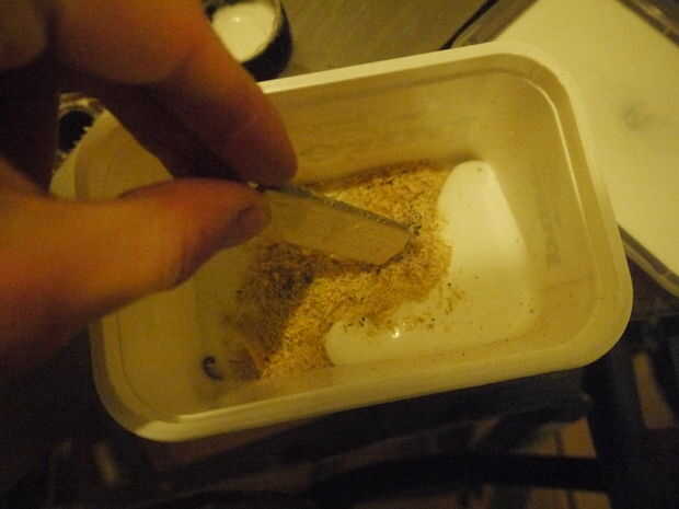 Barrer algunas virutas de madera gruesas de sus esfuerzos hasta el momento y se mezcla con PVA para hacer una pasta fácil de untar. Esto hace que gran woodfiller barato que aproximadamente coincide con su madera y llena las lagunas más grandes y oculta la mayor parte de sus tornillos de cabeza avellanada.