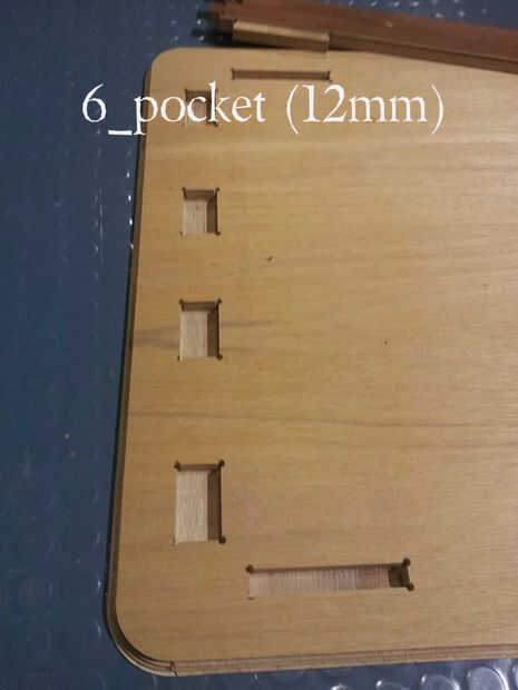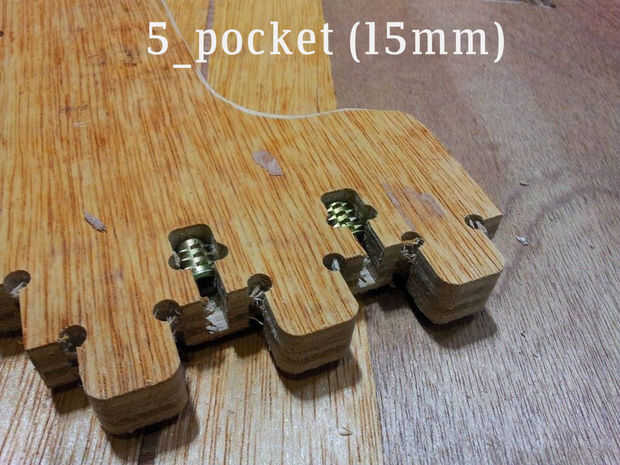 - 1_Pocket_12mm (marrón): designado lugares para pasador por el lado exterior del módulo de la pierna. Llevaba solo 2/3 (12mm) de espesor para ocultar los agujeros de perno desde fuera.