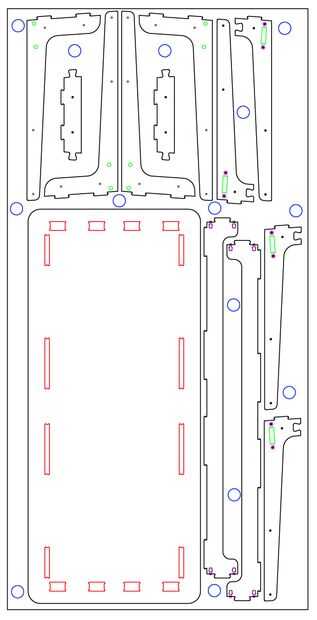 - 3_Through hole_19mm (verde): Ronda unos son para los pernos de conectador que conectan el módulo de pierna con vigas horizontales.