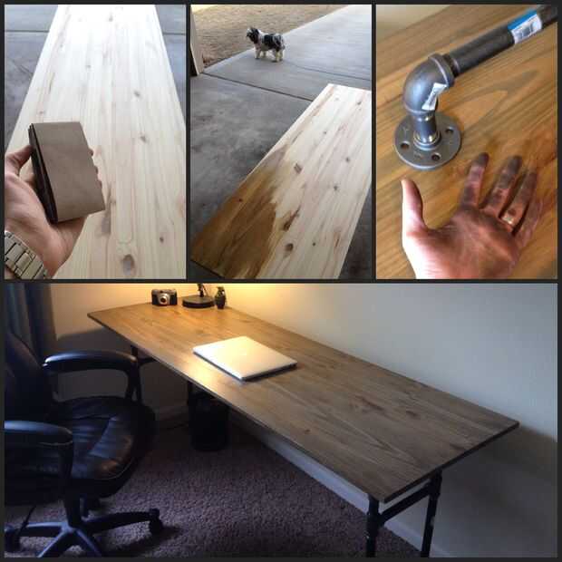 con alguna tubería, conexión y a la izquierda sobre pieza de madera contrachapada hice este gran escritorio para adornar nuestro rincón de la sala de estar.Paso 1: El Plan y las partes El plan era utilizar alguna tubería de cerca, algunas conexiones