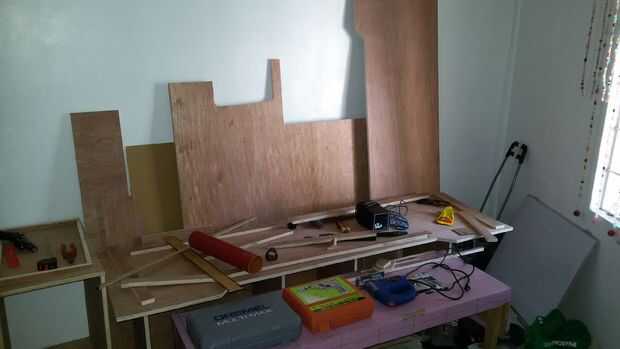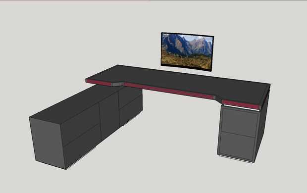 Mi plan es construir un escritorio que puede satisfacer todas mis necesidades. Puede modificar el diseño si lo desea, ajustar algunas medidas de ajuste para su sala u oficina. Mi habitación es siempre sucia por el trabajo que estoy haciendo, así que mi solución es agregar gabinetes y cajones para poner algunas de mis herramientas y otras cosas para que no se dispersa en el lugar.