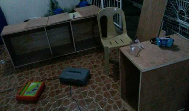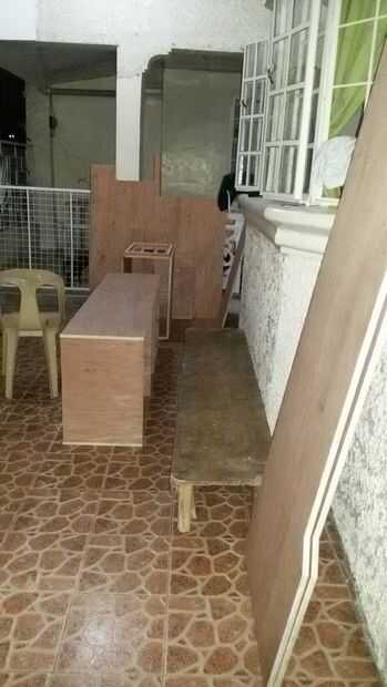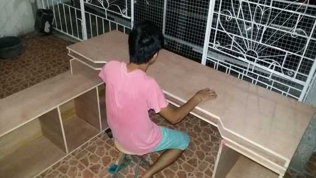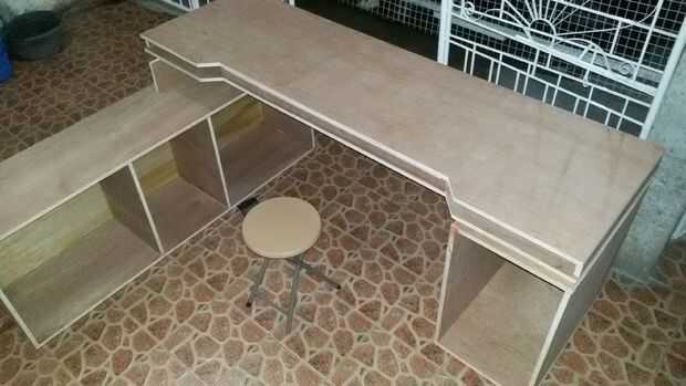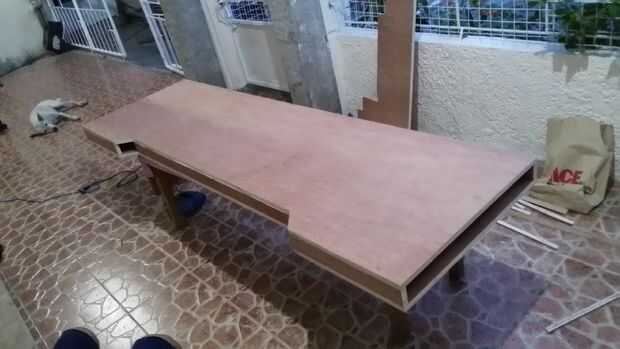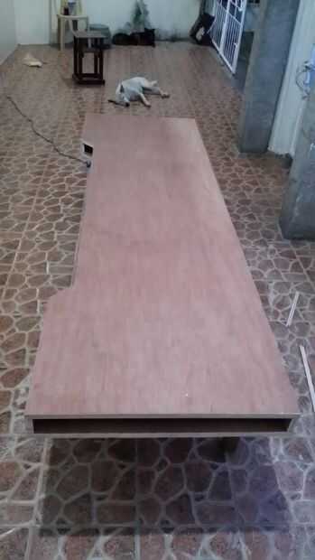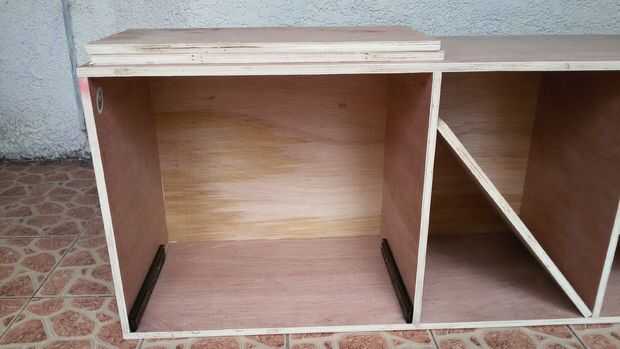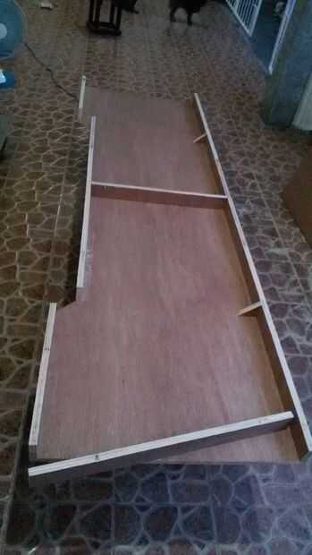 -Es mucho más largo que el gabinete de la derecha, esta vez estamos formando una caja rectangular, las medidas superior e inferior 64 pulgadas x 15 pulgadas, los paneles laterales derecho e izquierdo mide 22,2 x 15 pulgadas (hice 4 uds. de esto para la parte media de la caja, ver fotos), mismo procedimiento que el lado derecho del armario , encolarlos y poner tornillos.