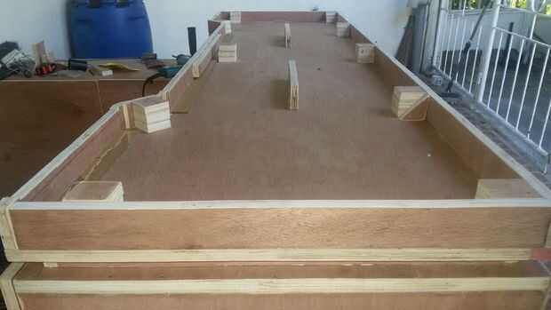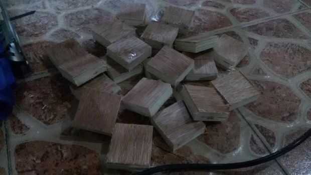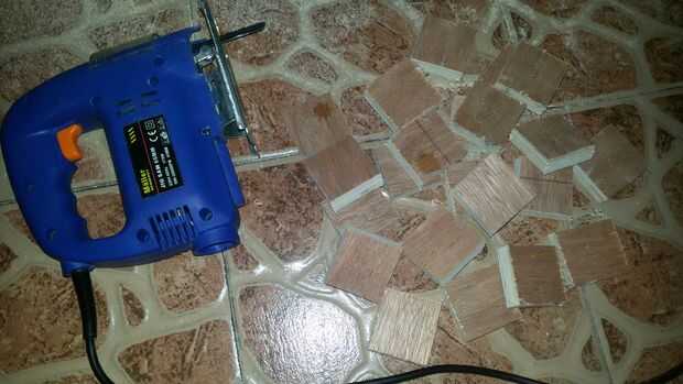 -Para que los soportes, corté 36 piezas de madera de 5 cm x 5 cm 15 mm de espesor y orificios para los tornillos.