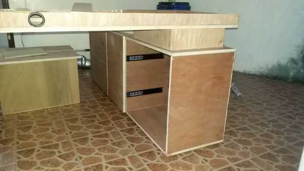 -La caja debajo de la mesa en el lado izquierdo del armario es en realidad un cajón, también puse un motorreductor para actuador lineal hacerlo interruptor activado.