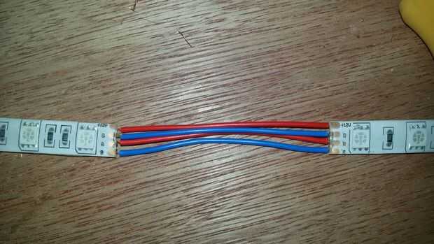 -Soldadura de los cables para conectar los 2 extremos de la tira del LED