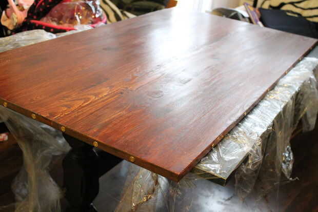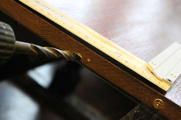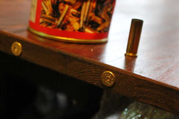 Después de 24 horas, cuando la segunda capa se secó, perforé cada 8 cm. apoderarse de un agujero de la concha de la munición (utilicé.38 especial) alrededor de la mesa. (a través del primer arma de fuego es más grande, cabe perfectamente cubrir el borde de los agujeros).