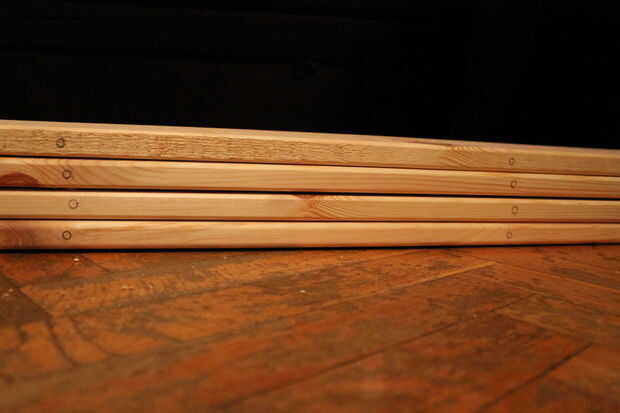 Ir a la nevera y tomar algo para beber y luego, marque punto (2 o más) de lados de cada tablón Asegúrese de que estén a la misma altura (todo, incluso vigas)