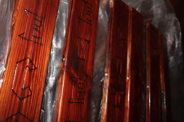 Usé el caoba oscuro mordiente y había pintado cada paz de madera con dos capas.