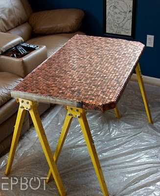 Cubrir el piso con un montón de plástico pesada - muy, muy, importante - como el epoxy se gotea hasta el suelo - y establecer su escritorio superior en unos caballetes o en otros soportes, asegurándose de que los bordes estén libres.