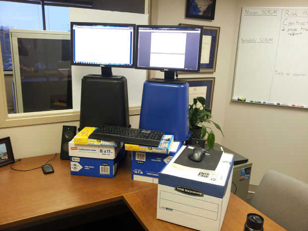 He sido un usuario de escritorio permanente durante años. Trabajar desde casa, cayó en un hábito de sentarse para más de 12 horas cada día mientras trabajaba. Había hecho algunas lectura en escritorios de pie, así que fui hacia fuera y y reunió a alg