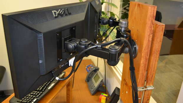 4. En su oficina, fije el soporte usando los tornillos incluidos. Necesitarás aproximadamente 2.5" de proyección para obtener un buen agarre.