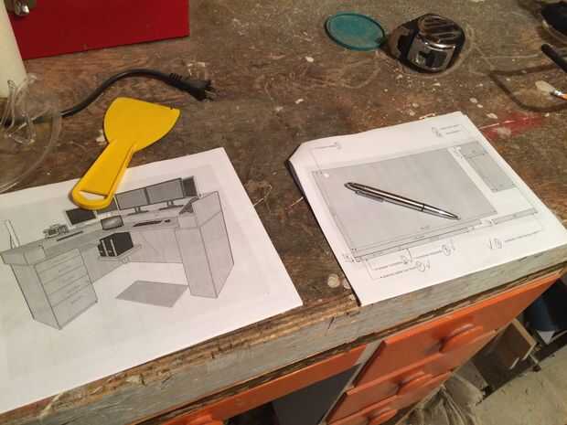 El primer paso es por supuesto el diseño del escritorio. Decidí usar SketchUp para este paso, como ya tuve alguna experiencia con él. También enseñé yo mismo la herramienta que diseño para la creación de diagramas de corte. Este trabajo extra al principio realmente valió la pena para un gran proyecto.