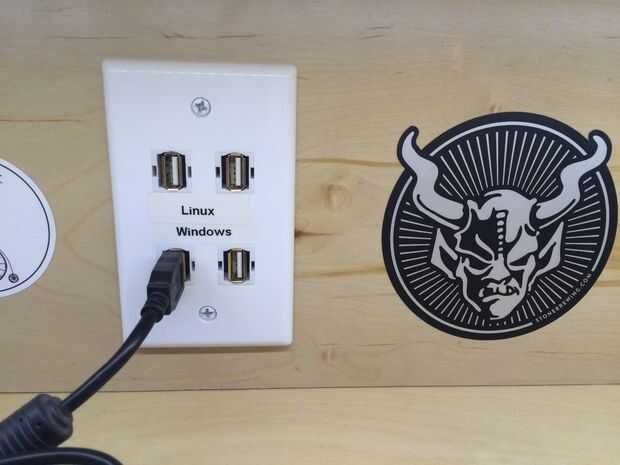 Algunos de los puertos USB van el la caja de Linux y algunos van a la PC de Windows.