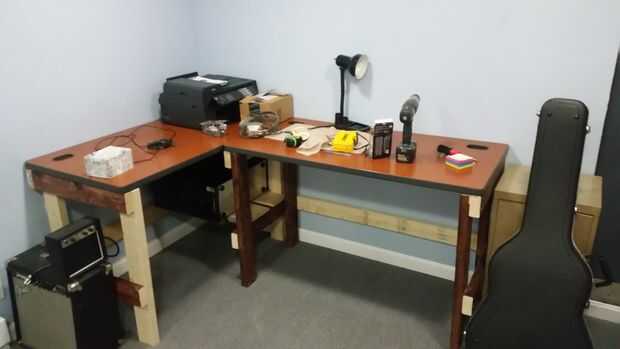 Este es mi primer Instructable, aunque he estado leyendo para meses que finalmente decidí contribuir! Necesitaba una mesa de un rincón sin usar de mi sala de estar. Me empezó a buscar en craigslist para escritorios, varios sitios web de compras y no podía encontrar cualquier cosa que me gustó así que decidí probar mi mano en un escritorio del edificio. Para este proyecto decidí ir tan barato como sea posible viendo como todavía soy un novato en la carpintería y francamente no tienen mucho dinero para gastar en un escritorio para la habitación de un sótano.