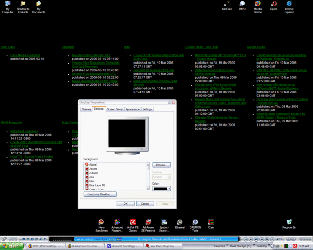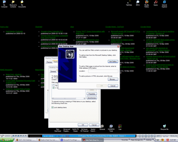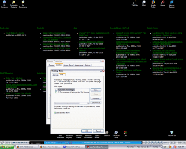 Haga clic derecho sobre los escritorio y seleccionados propiedades. Haga clic en la pestaña escritorio, luego el botón personalizar escritorio. A continuación, haga clic en la ficha Web y pulse el botón nuevo. Yout HTML archivo hit Ok y Ok otra vez. Una marca de verificación junto a su listado en el directorio archivos y quitar una al lado de "Mi página de inicio actual" y haga clic en Aceptar. Presione Ok otra vez.