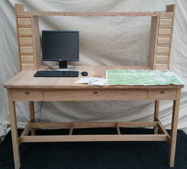 He comprado tres diferentes piezas de muebles usados en diferentes momentos sin saber exactamente lo que quería hacer con ellos solo sabiendo que eran de valor para mí porque fueron hechos de madera maciza de roble. Una vez que tenían juntos que me di cuenta de que yo podría hacer una mesa multifuncional, lo suficientemente grande para un equipo tener uno o dos monitores con suficiente espacio en el escritorio a disposición mapas o imprime imágenes.