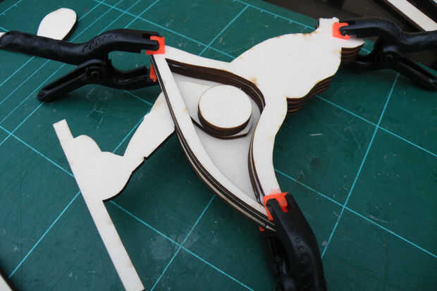 Coloque los pierna-plus-discos pegados en las pega ya-partes del cuerpo, entonces capa pegamento las dos de la carrocería con un fondo para el kilt.