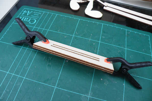 Capa, pegamento y abrazadera los dos rectángulos juntos - asegurarán de que las ranuras alinean correctamente.